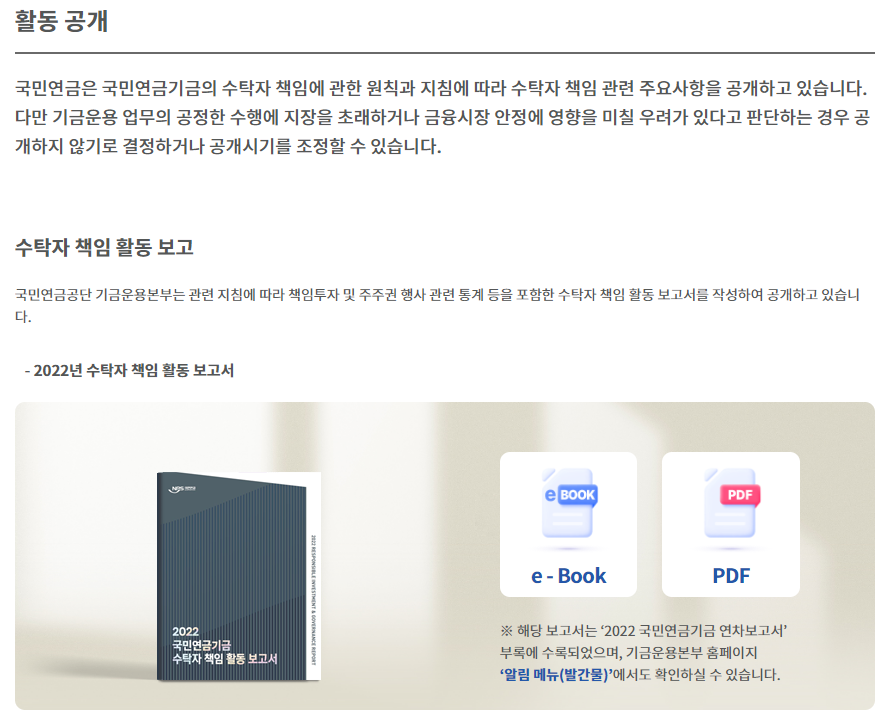 국민연금도 아래와 같이 활동을 연 단위로 보고를 합니다.