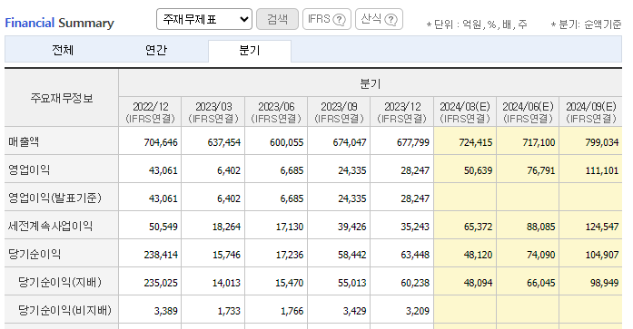 2023년 대비 분기 최대 실적임을 알 수 있습니다.