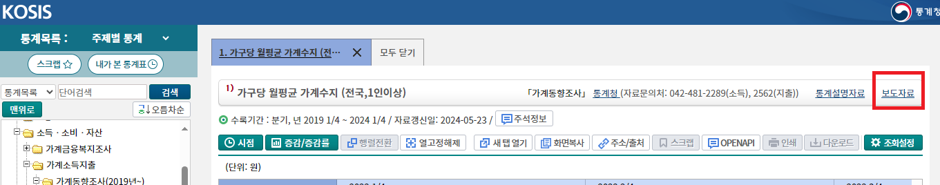 목록 | 가계동향조사 | 물가 · 가계 | 보도자료 | 새소식 : 통계청 (kostat.go.kr)