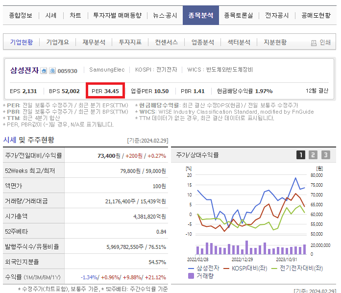 삼성전자 PER 34.45 !!! , 이건 10 보다 많이 크니 엄청난 고평가야~~???