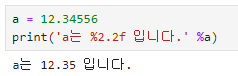 문자열 부분에 %숫자.숫자f 라고 적고 문자열의 뒤에 %변수라고 하게 되면