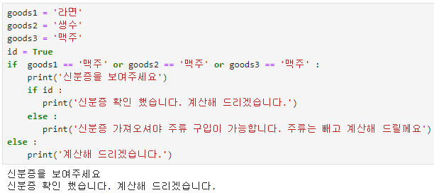 if goods1 == '맥주' or goods2 == '맥주' or goods2 == '맥주' :