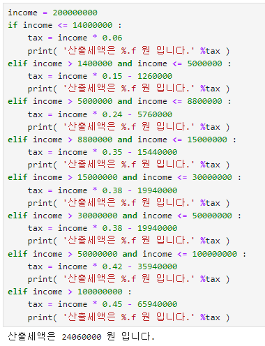 print( '산출세액은 %. f 원 입니다.' %tax )