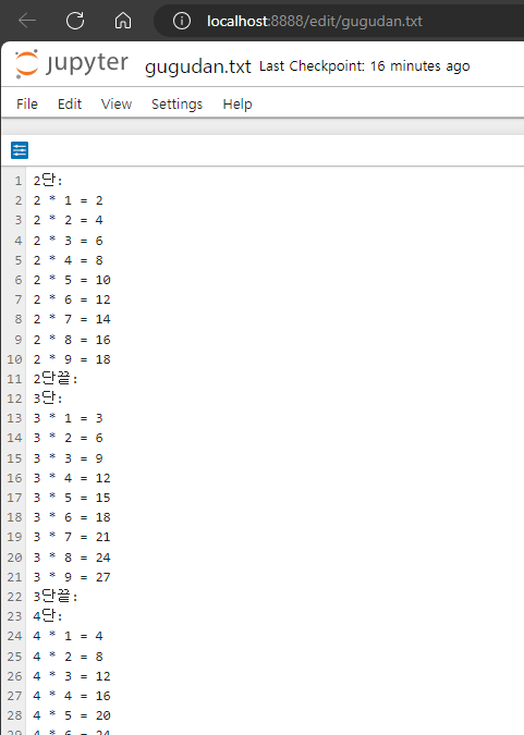 with open('gugudan.txt', 'w', encoding='utf-8') as f: