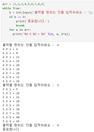 b = int(input('출력을 원하는 단을 입력하세요 : '))